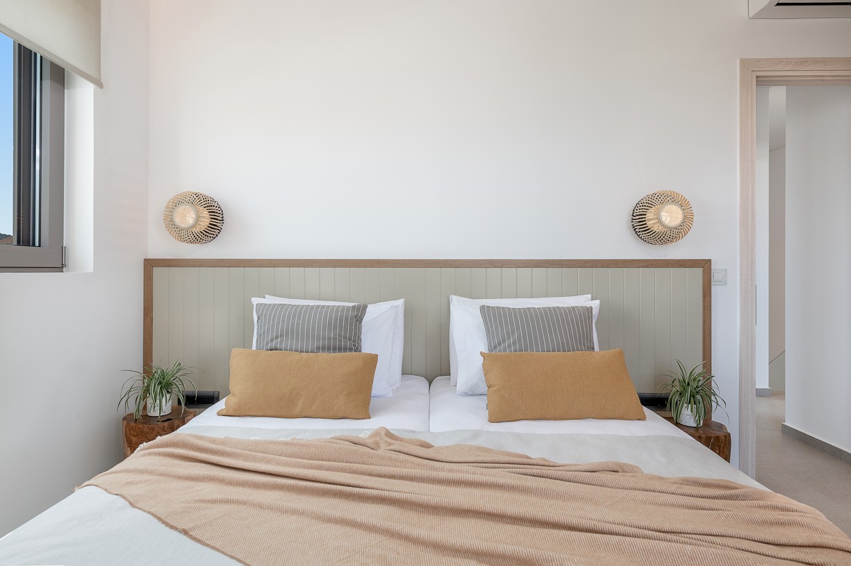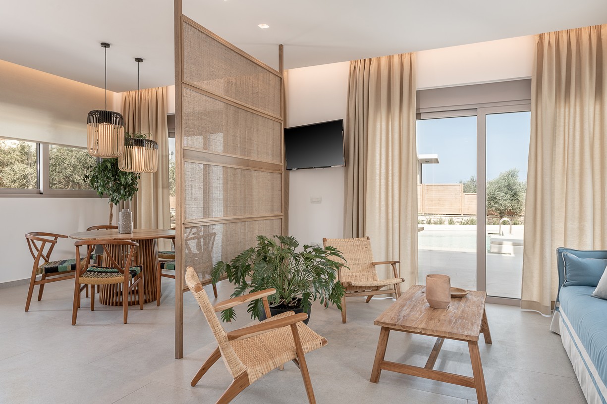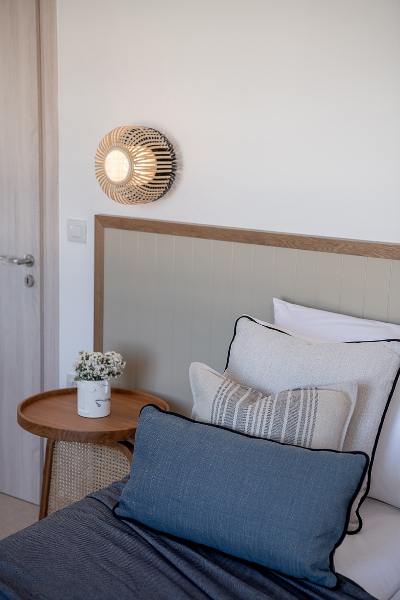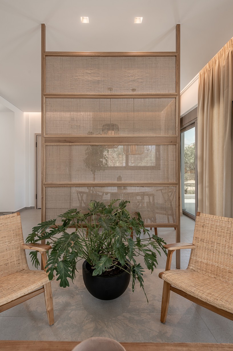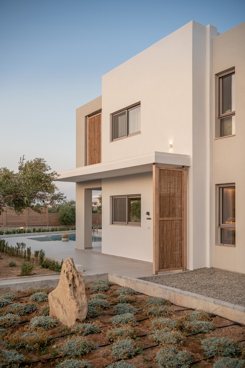‘’Anthos Holiday Villas’’ is located at Tavronitis Village, placed in an olive grove near the sea. It consists of 3 buildings, 100 sqm each one. The choice of the materials (concrete blocks, solid wood and warm colors) was inspired by the surroundings and the whole project is connected with the olive grove and at the same time with the sea view and the light.