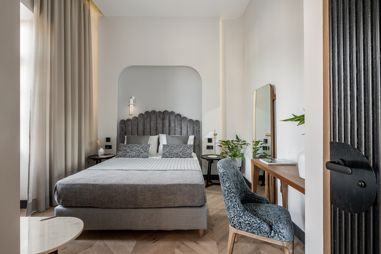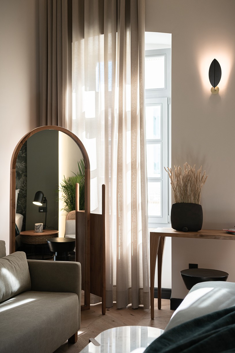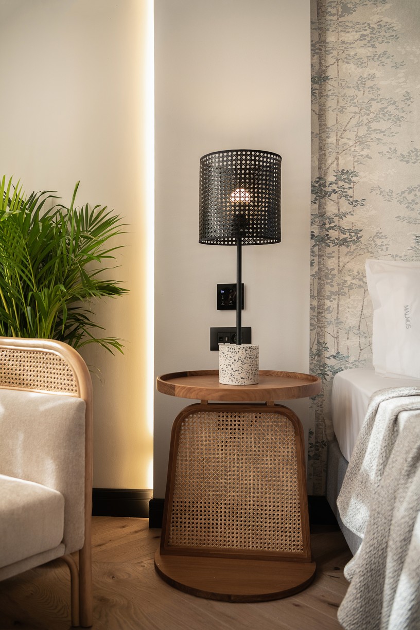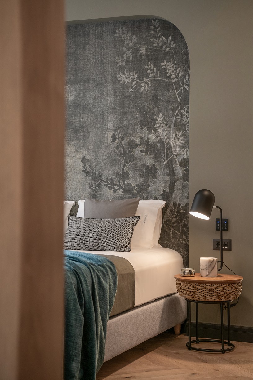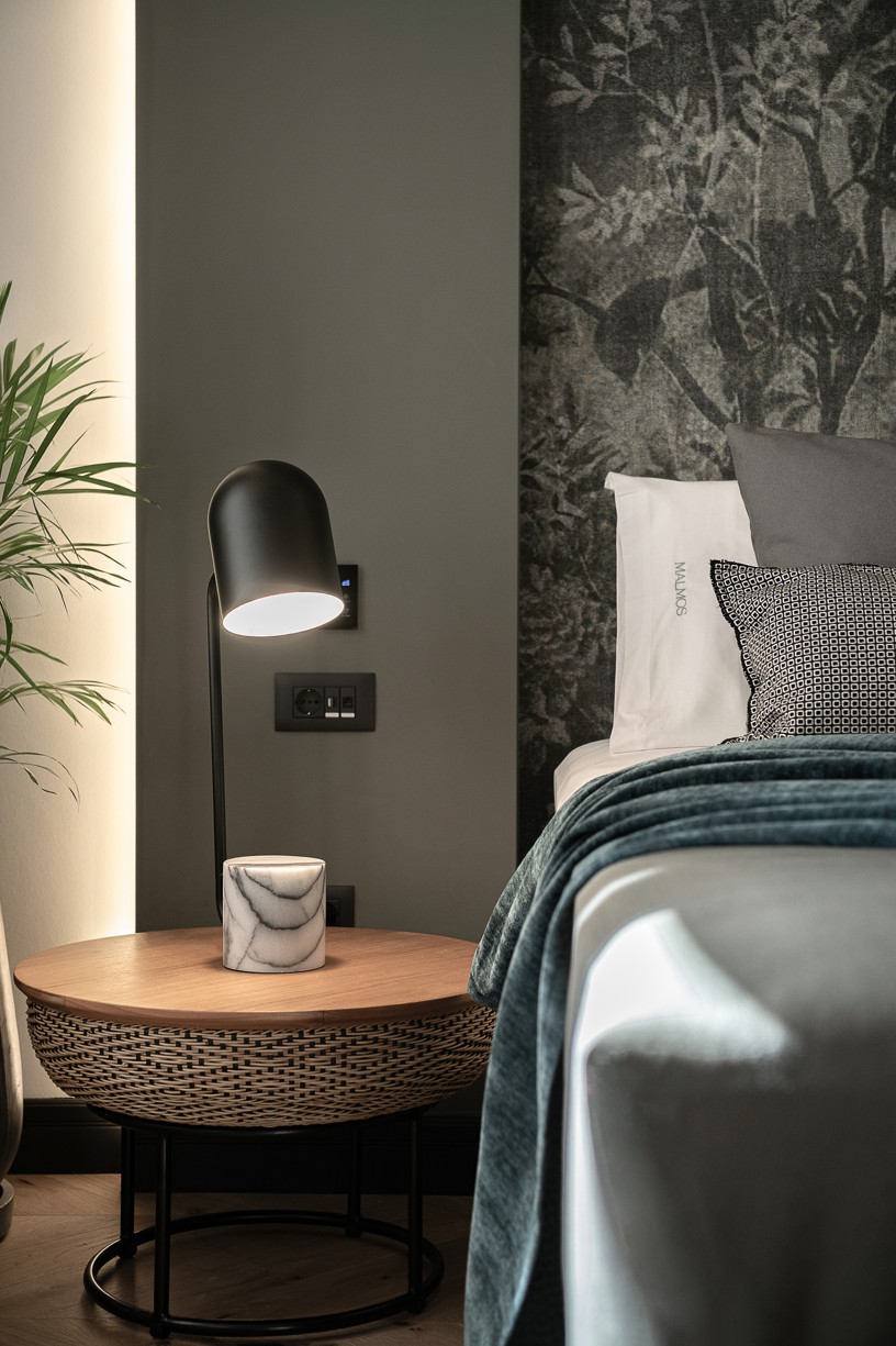 Ένας έξυπνος σχεδιασμός στην κυκλοφορία των δωματίων και των μπάνιων σε συνδυασμό με μια ιστορικού ύφους παλέτα χρωμάτων και υλικών δίνουν στο ξενοδοχείο την ευελιξία που χρειάζεται για να προσεγγίσει ένα ευρύ κοινό. Κάθε δωμάτιο έχει σχεδιαστεί με ιδιαίτερη φιλοσοφία που να εναρμονίζεται με τα υπάρχοντα ανοίγματα του κτηρίου αλλά και του φωτισμού που αυτά έχουν ανάλογα με την κίνηση του ήλιου. Στα πιο φωτεινά και μεγάλα δωμάτια έχει επιλεγεί μια πιο σκούρα παλέτα χρωμάτων και υλικών και αντίστοιχα στα πιο μικρά, ουδέτερα χρώματα με ελάχιστα έντονα στοιχεία. Οι απαλές εναλλαγές στους χρωματισμούς των δωματίων τονίζονται με έναν ιδιαίτερο τρόπο με το μαύρο σοβατεπί και μαύρες λεπτομέρειές σε πρίζες και φωτιστικά. Όλοι οι χώροι του ξενοδοχείου φιλοξενούν μια design συλλογή επίπλων που σχεδιάστηκαν από το γραφείο μας ειδικά για το Malmos Historic Hotel, καθώς και επιλεγμένα επώνυμα έπιπλα και φωτιστικά.