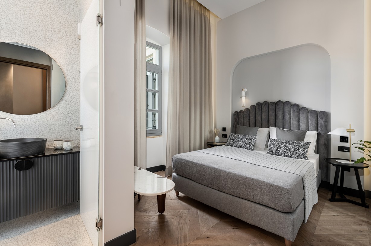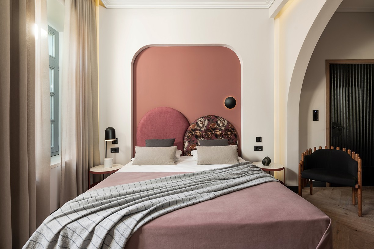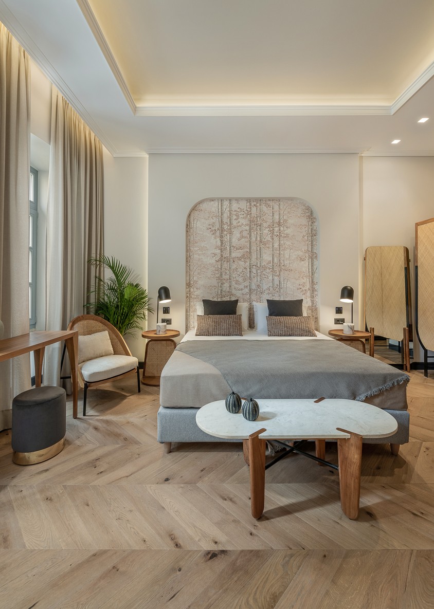 One of the oldest and most important buildings of Chania old town gains a new lease of life. ‘’Malmo Hotel’’ is located in the city’s historic center and offers a fresh perspective from the nostalgic interiors of the past. We wanted to create a classical and cozy environment, to steer away from fads, and to provide a modern theme appropriate to the heritage of the building. The interior space fuses classical and modern aesthetics through a colorful and eclectic design. At the reception area we combined plush seating and green plants to create a laidback and friendly atmosphere that lulls guests into a friendly welcome. A unique design and a bespoke furniture collection designed from our office, lends the space the versatility needed to appeal to a wide clientele.