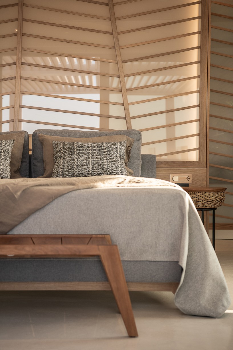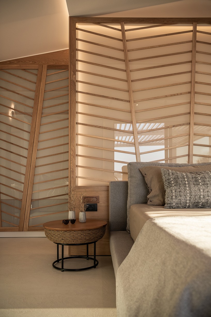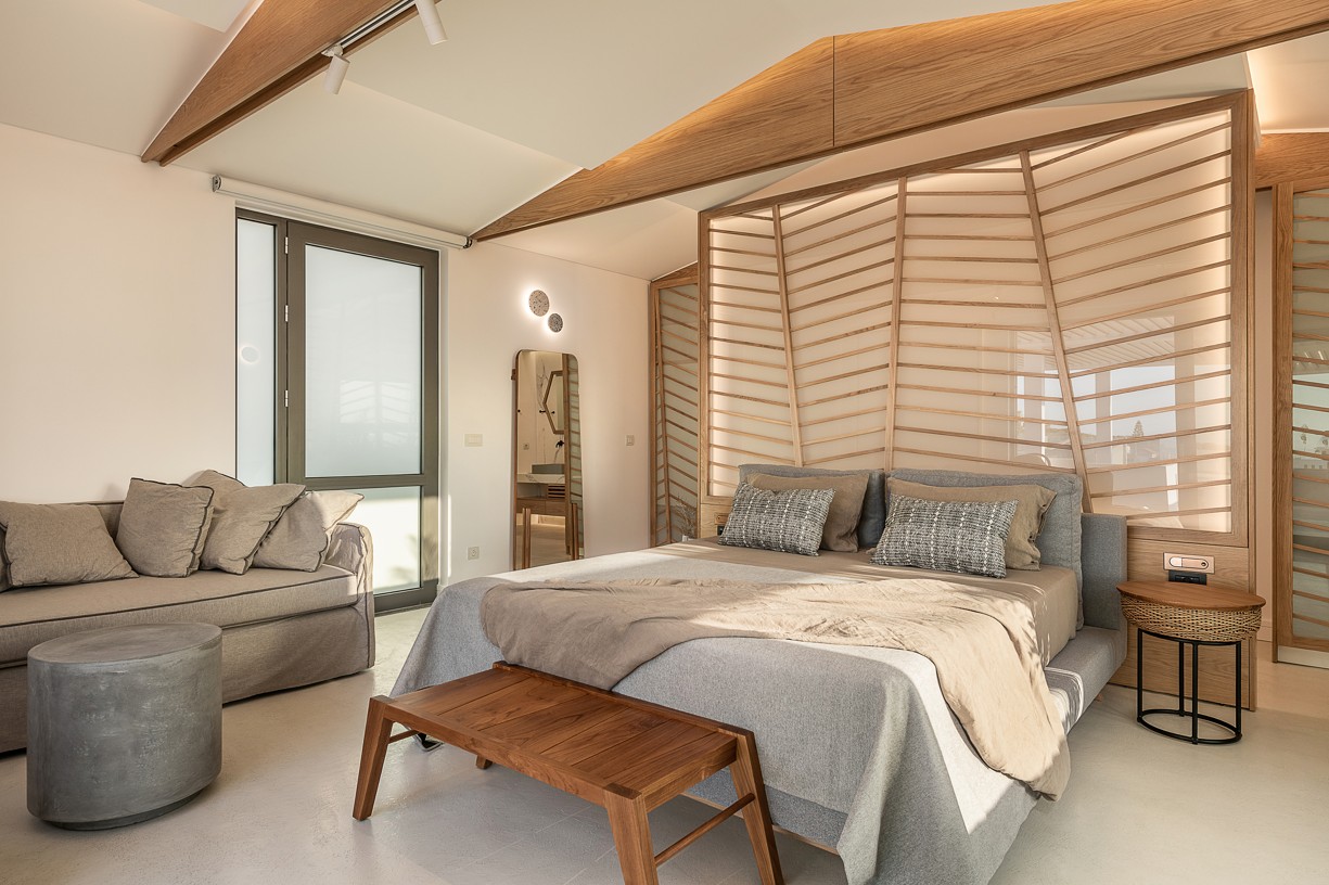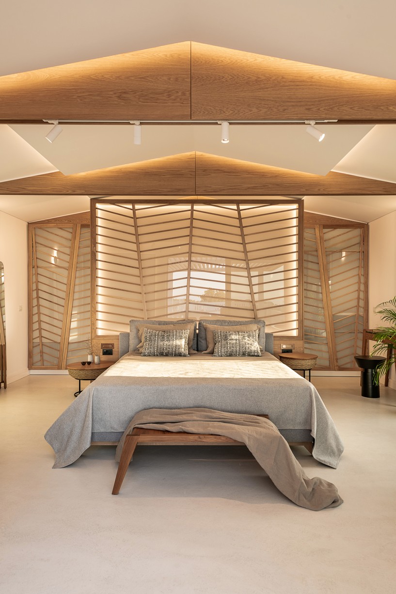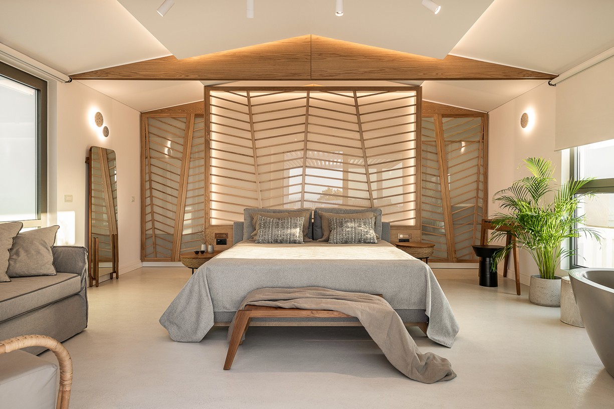 The design of this hotel suite aims to maximize the sense of the big space by setting the bed as center stage of the room. The circulation is defined by the bed and the rest of the functions take place around it. The structure has simple, essential lines increased by wooden details and bevel levels from the roof. Our goal was to create an intimate space via a warm color pallet. This personality will be extended to the hotel’s common area to create a unified whole.