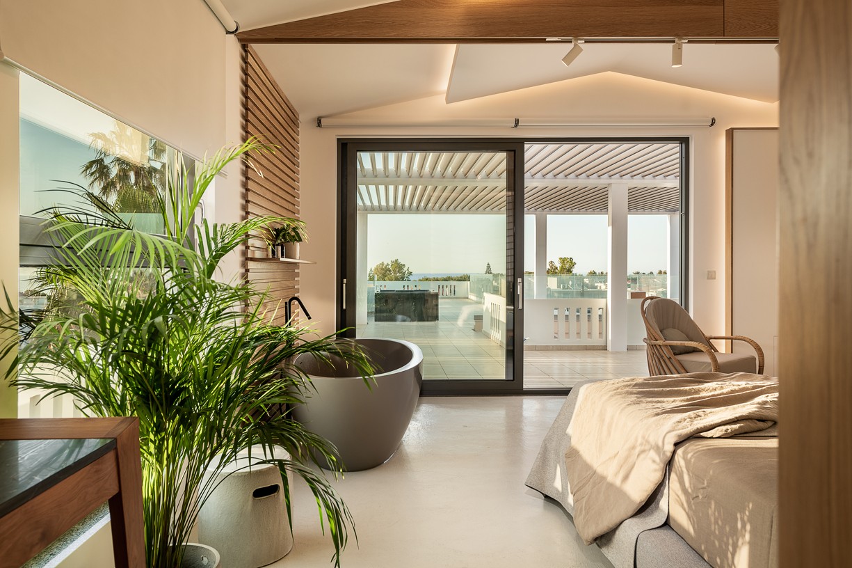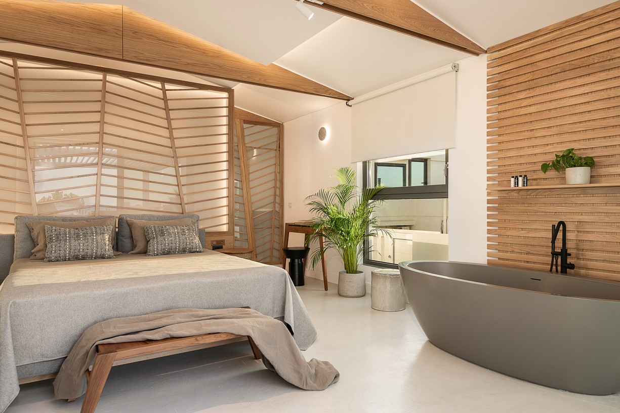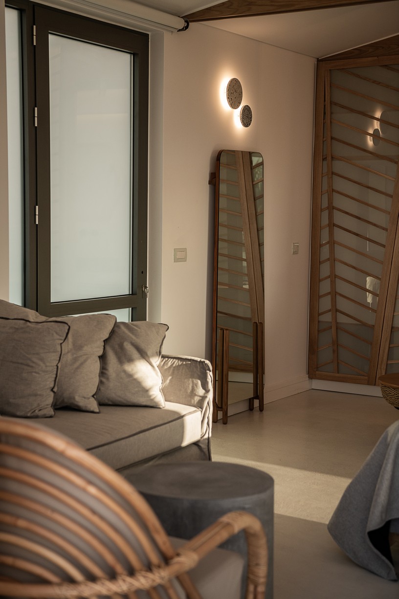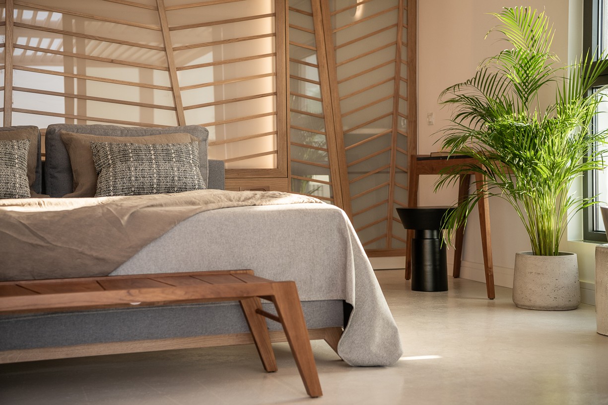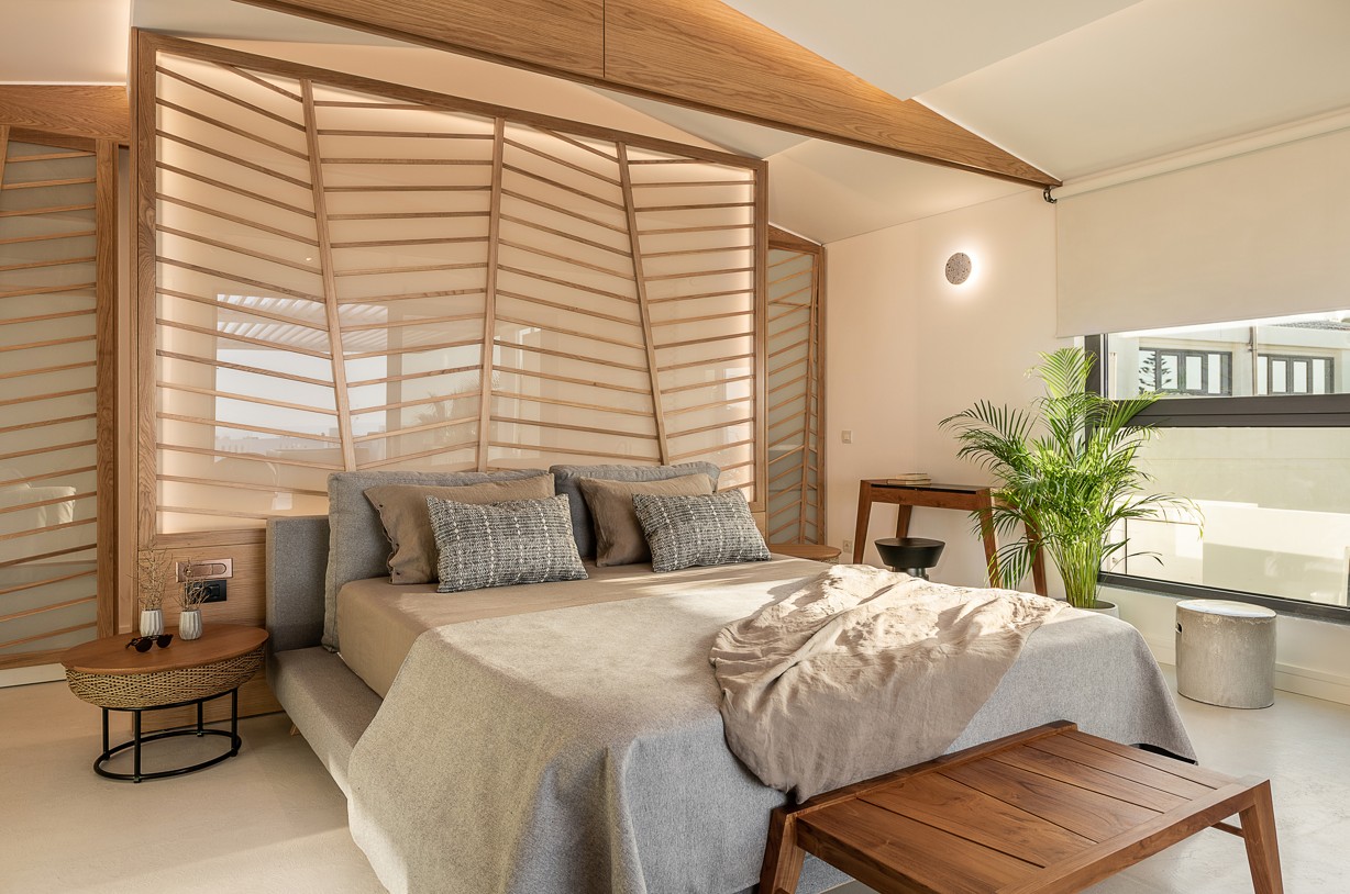 The design of this hotel suite aims to maximize the sense of the big space by setting the bed as center stage of the room. The circulation is defined by the bed and the rest of the functions take place around it. The structure has simple, essential lines increased by wooden details and bevel levels from the roof. Our goal was to create an intimate space via a warm color pallet. This personality will be extended to the hotel’s common area to create a unified whole.