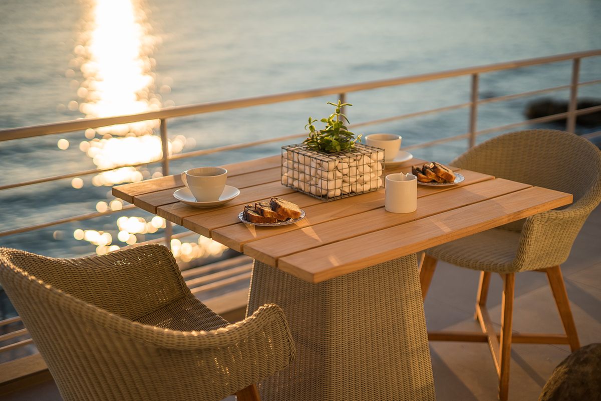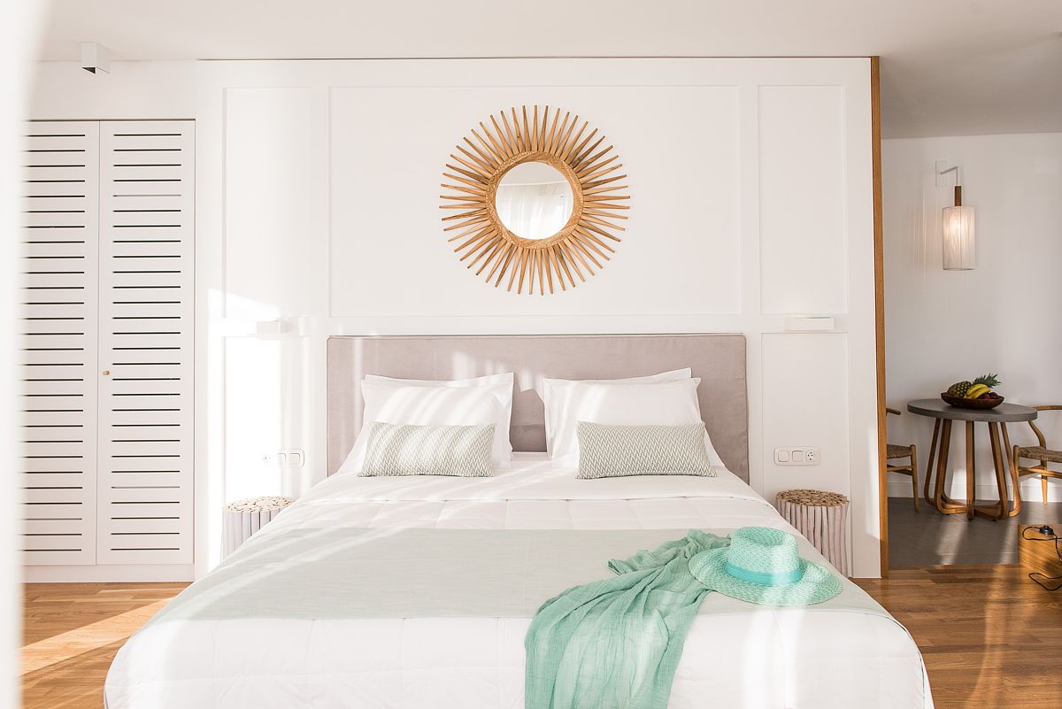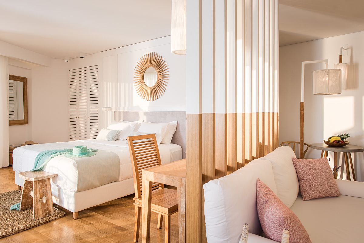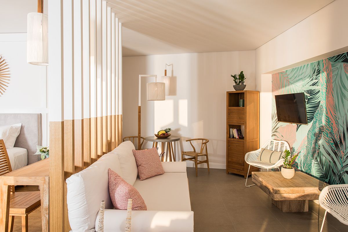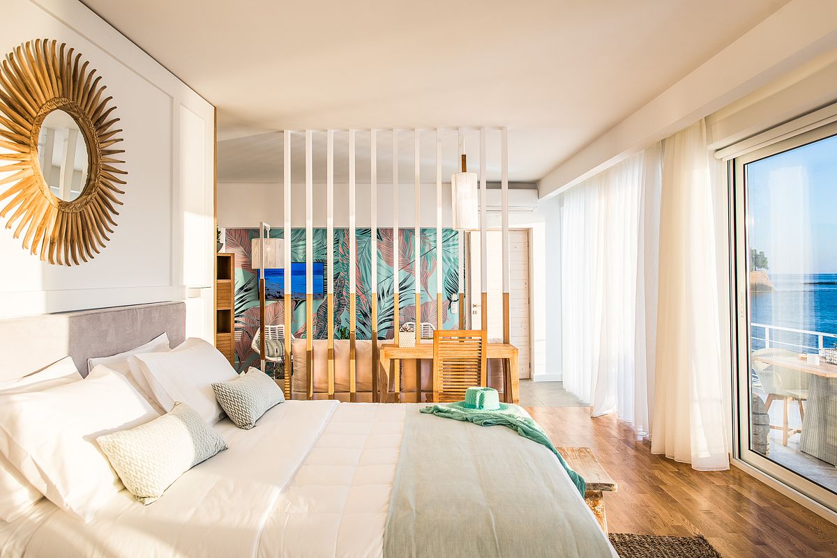 Με επίκεντρο την ανεμπόδιστη θέα, το διαμέρισμα επιτρέπει από οποιοδήποτε σημείο του να υπάρχει οπτική επαφή με την θάλασσα. Η κυκλοφορία στο εσωτερικό γίνεται γύρω από ένα διάτρητο διαχωριστικό το οποίο είναι παράλληλα και η πλάτη του καναπέ, ενώ οι περισσότερες λειτουργίες του χώρου είναι τοποθετημένες στην κλειστή πλευρά του κτηρίου. Από την εναλλαγή εξωτικών στοιχείων και υλικών σε απλές φόρμες με απαλούς χρωματισμούς προκύπτει ένα ανάλαφρο Καλοκαιρινό σκηνικό, ιδανικό για διακοπές δίπλα στην παραλία του Κουμ Καπί.