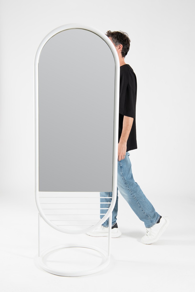 A balance of timeless aesthetics and striking form, the Theta Mirror has quickly become one of our favourite design objects. The curved character embraces your reflection and frames you in the present.